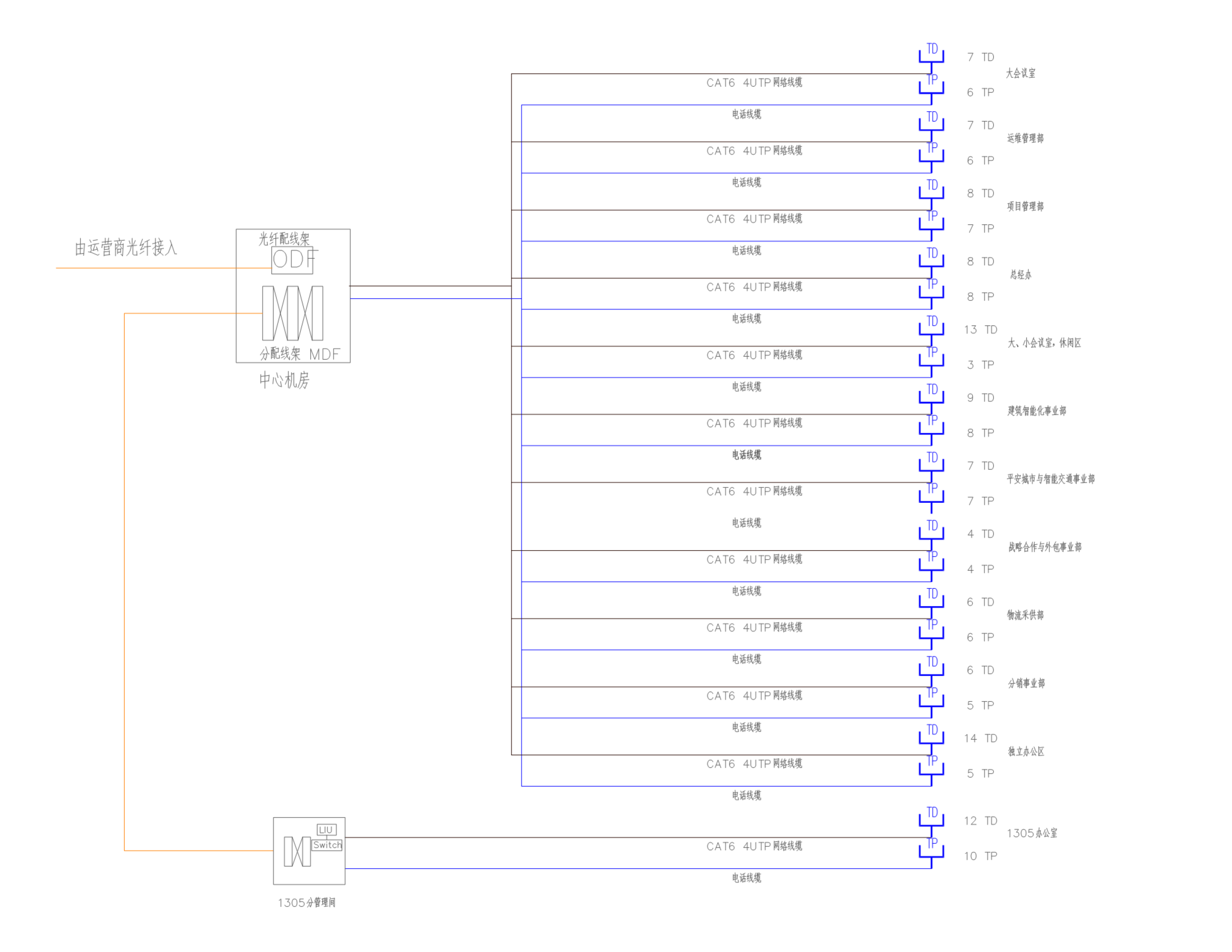 1、建立完善的布線系統(tǒng),滿足120用戶的話音、數(shù)據(jù)通訊要求。