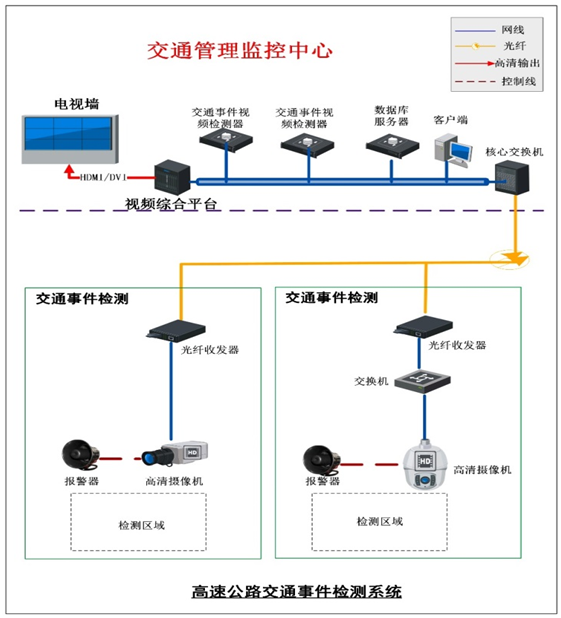高速公路交通監(jiān)控系統(tǒng)其主要功能是借助現(xiàn)代交通流觀測、誘導(dǎo)與控制的相關(guān)理論,并利用計算機(jī)技術(shù)、閉路電視監(jiān)視技術(shù)、信息多媒體技術(shù)等領(lǐng)域的科技發(fā)展成果,對高速公路的交通運(yùn)營狀況、車輛行駛情況以及道路環(huán)境狀況進(jìn)行全面觀測,并對沿途車輛的行駛路線、行駛方式進(jìn)行有效誘導(dǎo)與控制。