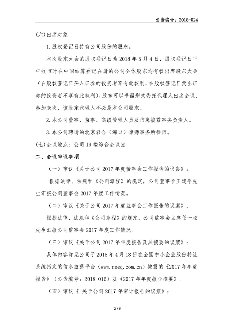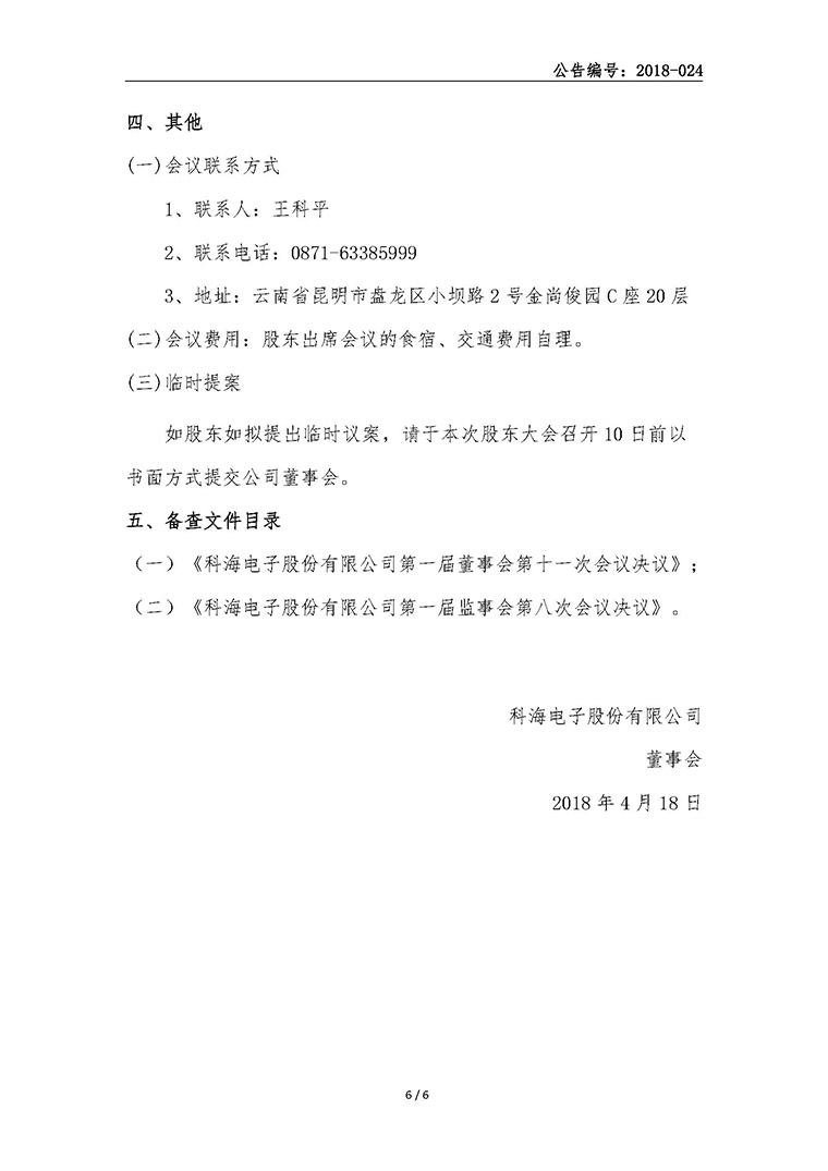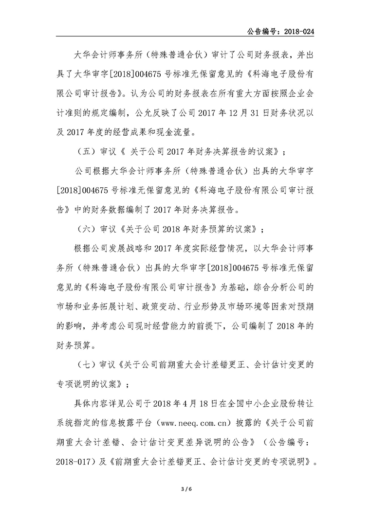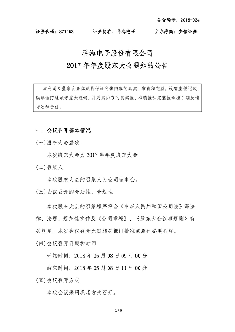 科海電子股份有限公司2017年年度股東大會(huì)通知的公告