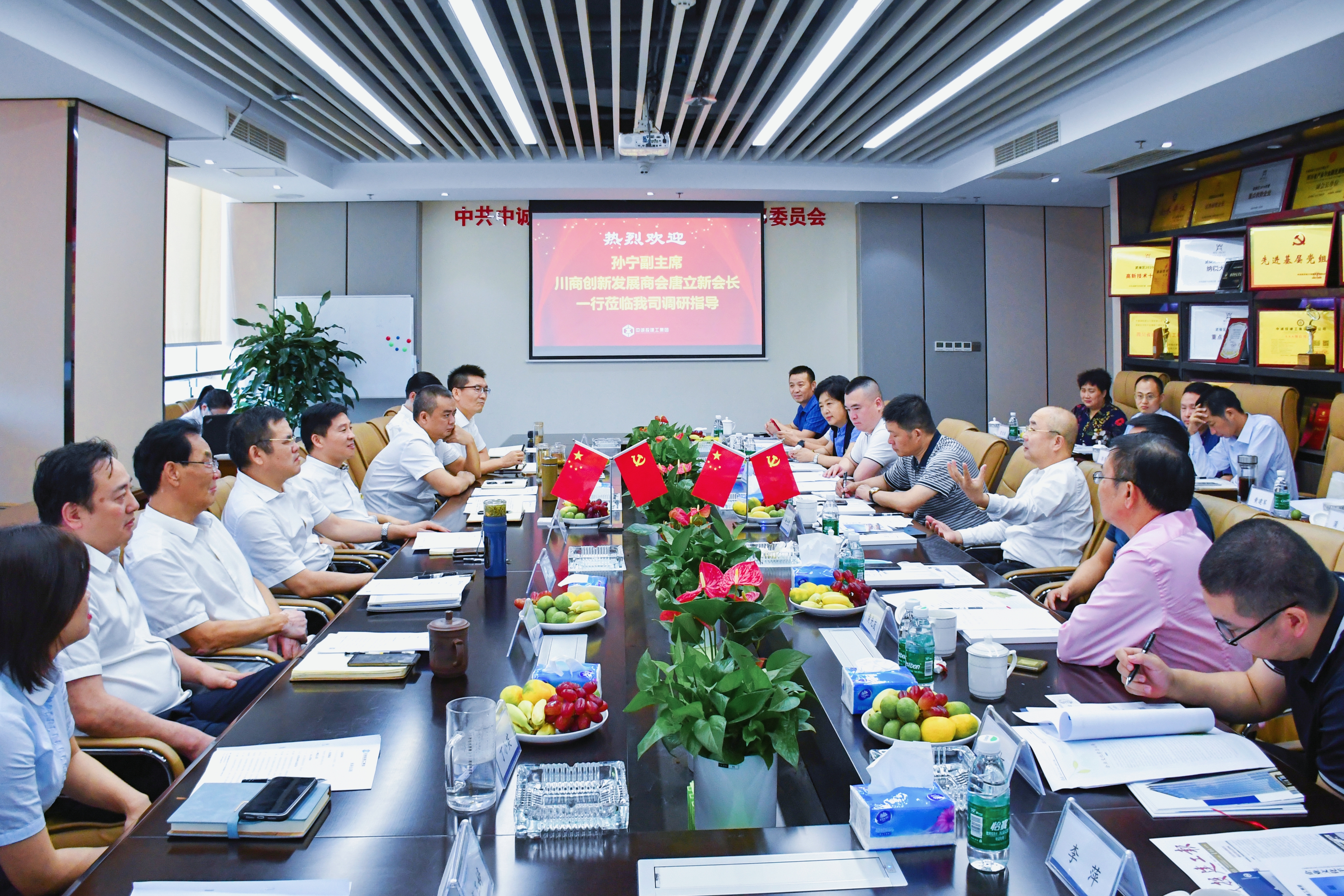 8月18日下午,四川省工商聯黨組成員、副主席孫寧率川商創新發展商會會員企業家代表蒞臨中誠投建工集團調研指導生產經營工作。川