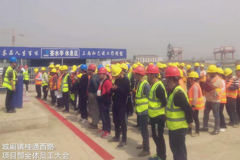3月15日,集團公司成都國際鐵路港多式聯運項目部舉行項目現場安全教育大會,把安全第一,生命至上"當作施工建設工作重中之重來抓緊抓好