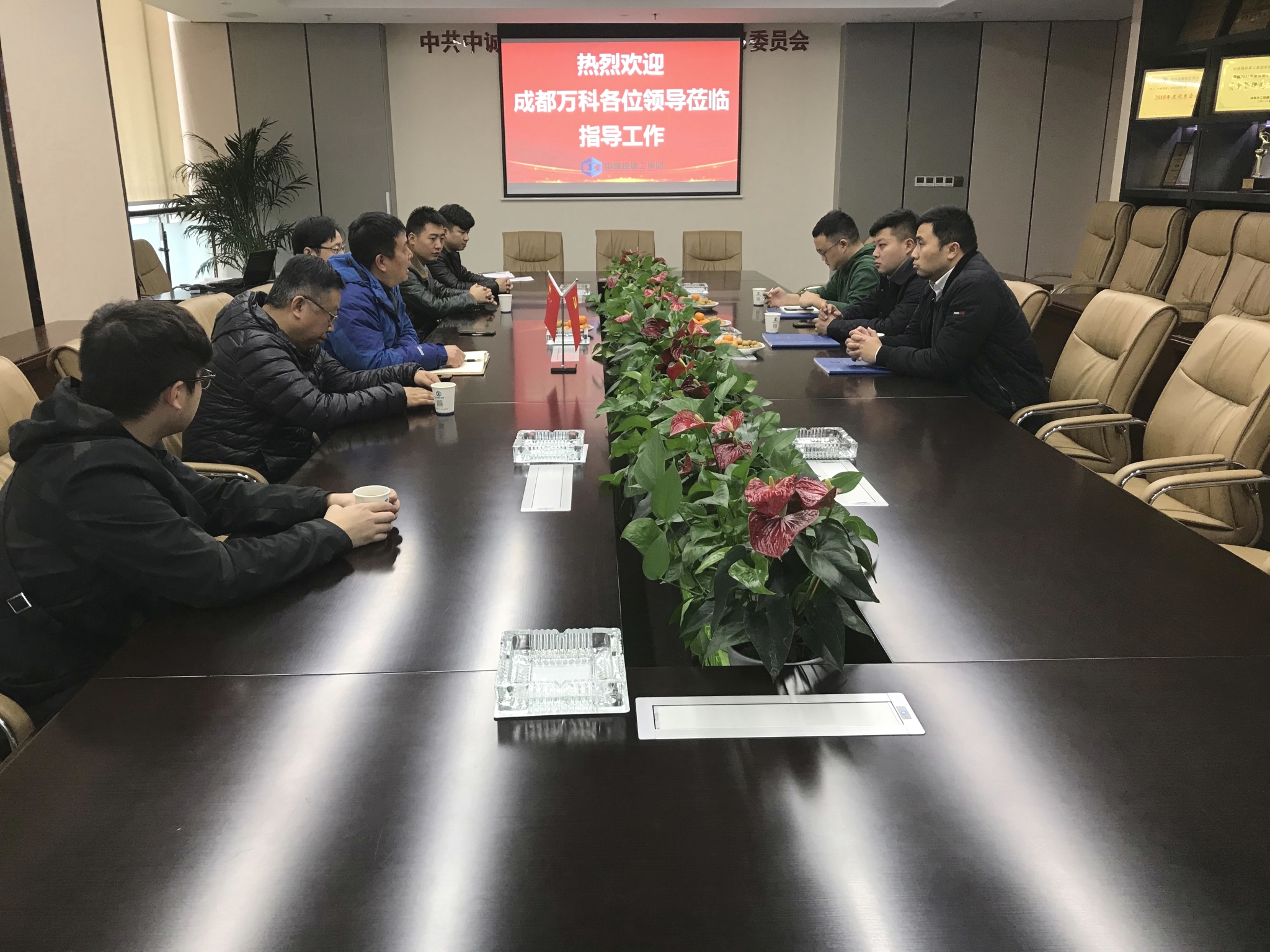 12月12日,成都萬科公司黃高翔、楊亮等一行來集團公司參觀考察,集團公司董事長助理陶華及相關業務部門負責人熱情歡迎了黃高翔一行并