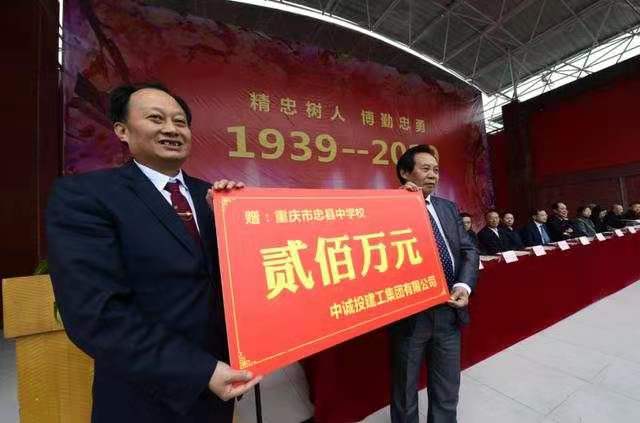 11月22日,在重慶市忠縣中學建校80周年辦學成果展示活動中,集團公司向該校捐贈資金200萬元,用于幫助學校建設與發展。 近年來