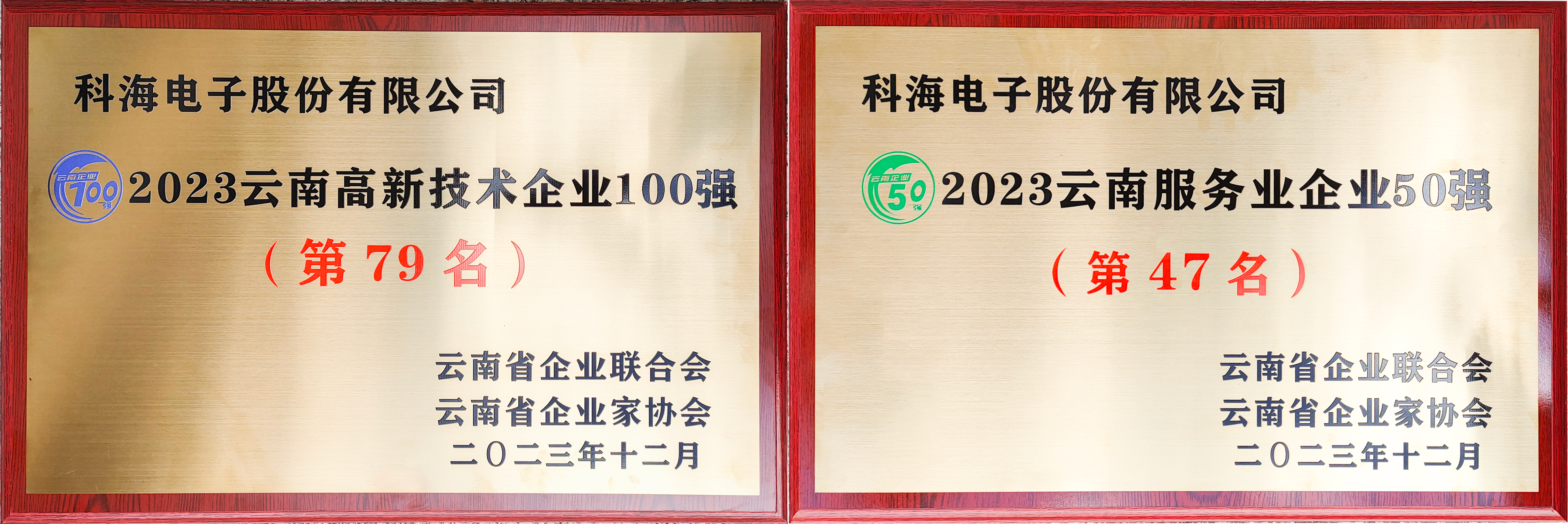 12月16日,由云南省企業(yè)聯(lián)合會(huì)、云南省企業(yè)家協(xié)會(huì)聯(lián)合舉辦的“2023云南企業(yè)100強(qiáng)發(fā)布會(huì)”在昆明市隆重舉行,會(huì)議對(duì)云南優(yōu)秀企業(yè)進(jìn)行了榮譽(yù)表彰。科海電子榮登“2023云南高新技術(shù)企業(yè)100強(qiáng)”、“2023年云南服務(wù)業(yè)企業(yè)50強(qiáng)”榜單。