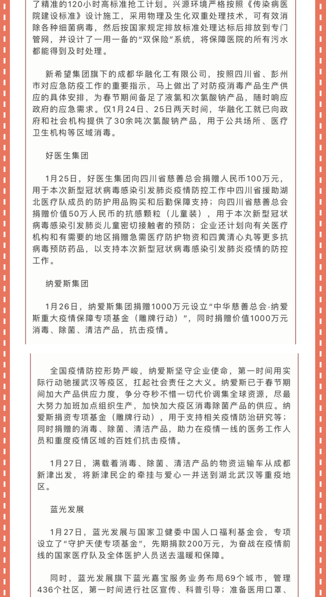 近期,湖北省武漢市等各地陸續發生新型冠狀病毒感染的肺炎疫情,牽動著全國人民的心。面對這場突如其來的疫情,善的力量不會缺席!日前,受董事長郭代軍的指示,集團公司通過四川省光彩事業促進會向武漢捐款100萬元,用于支援武漢抗擊新型肺炎疫情。