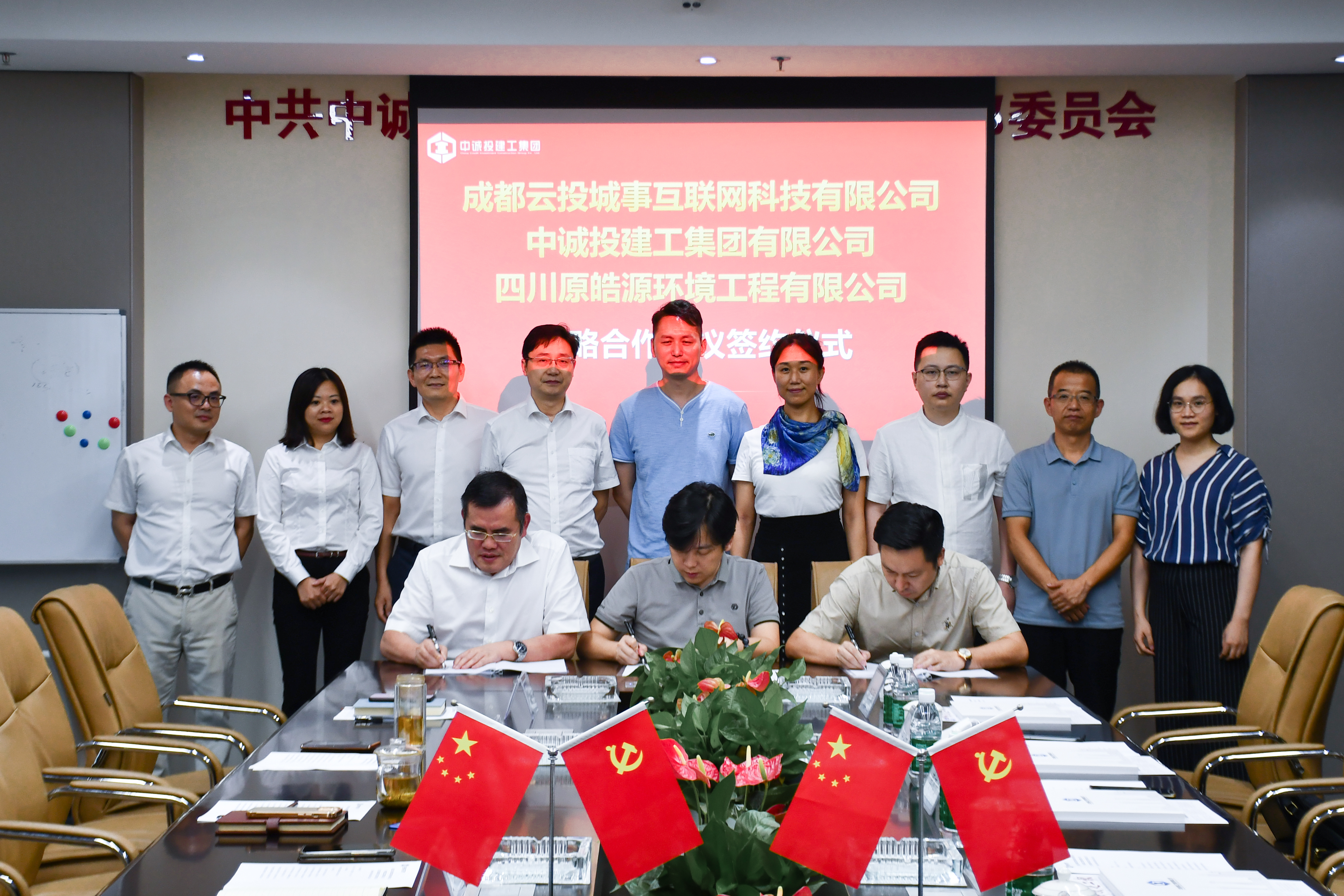 中誠投建工集團有限公司、成都云投城事互聯網科技有限公司、四川原皓源環境工程有限公司相關部門負責人參加了簽約儀式。