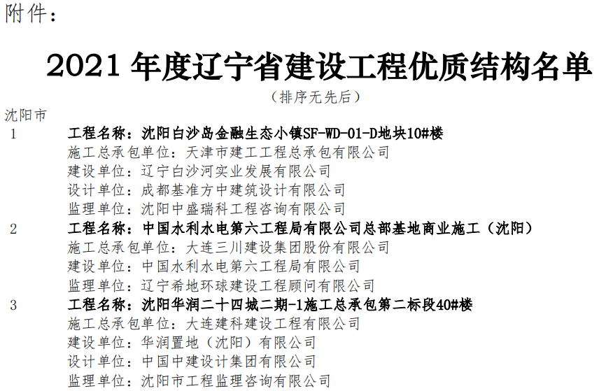 遼寧分公司項目獲評2021年度遼寧省建設工程優質結構稱號