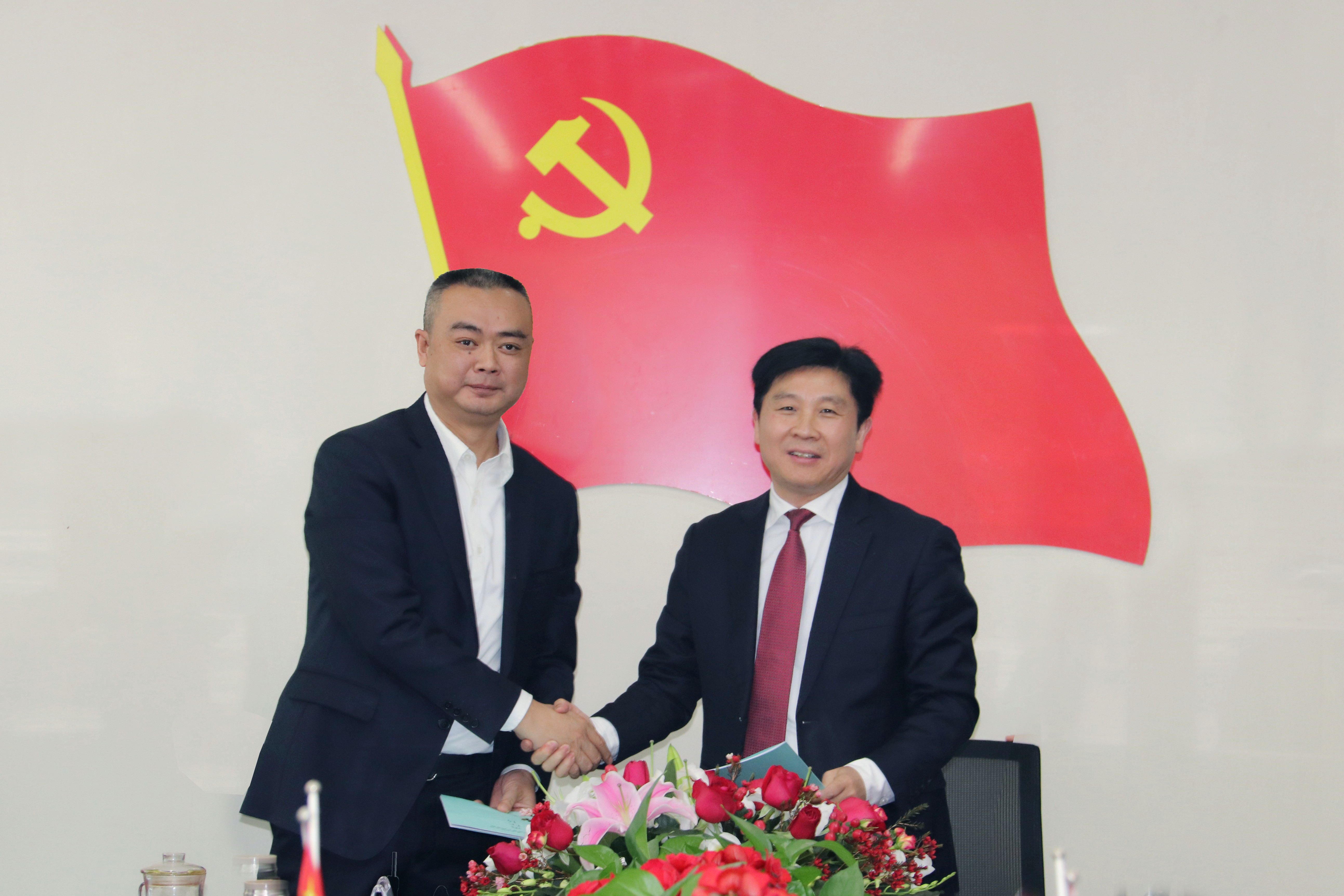 董事長郭代軍與總經(jīng)理張輝簽訂2022年度經(jīng)營目標(biāo)責(zé)任書。