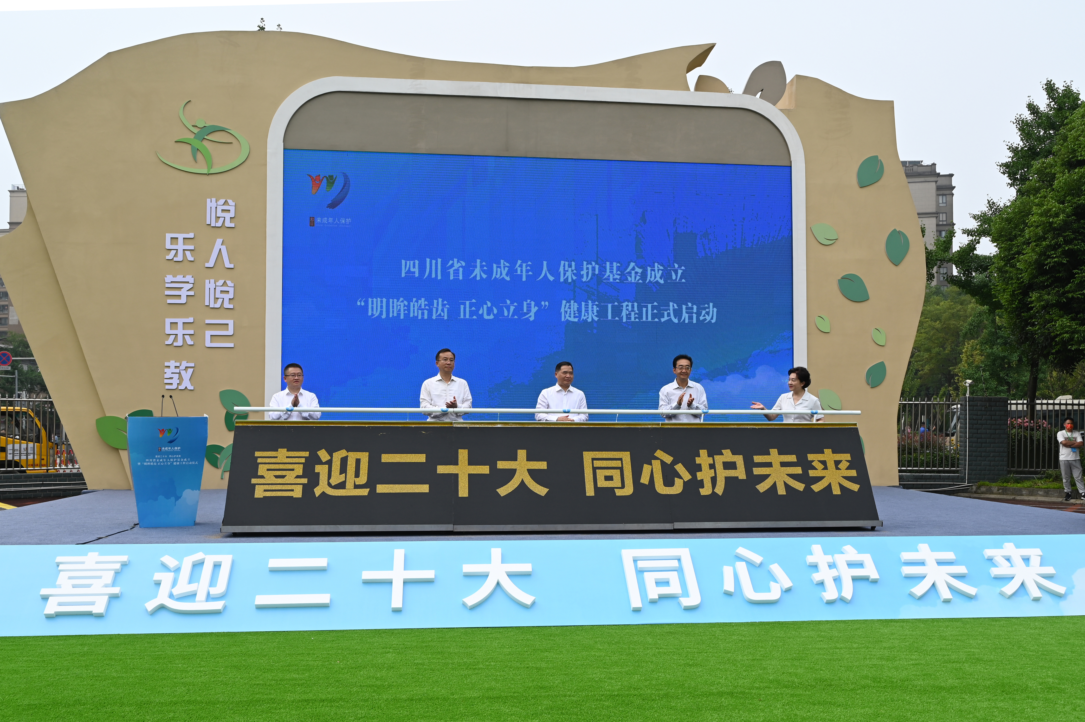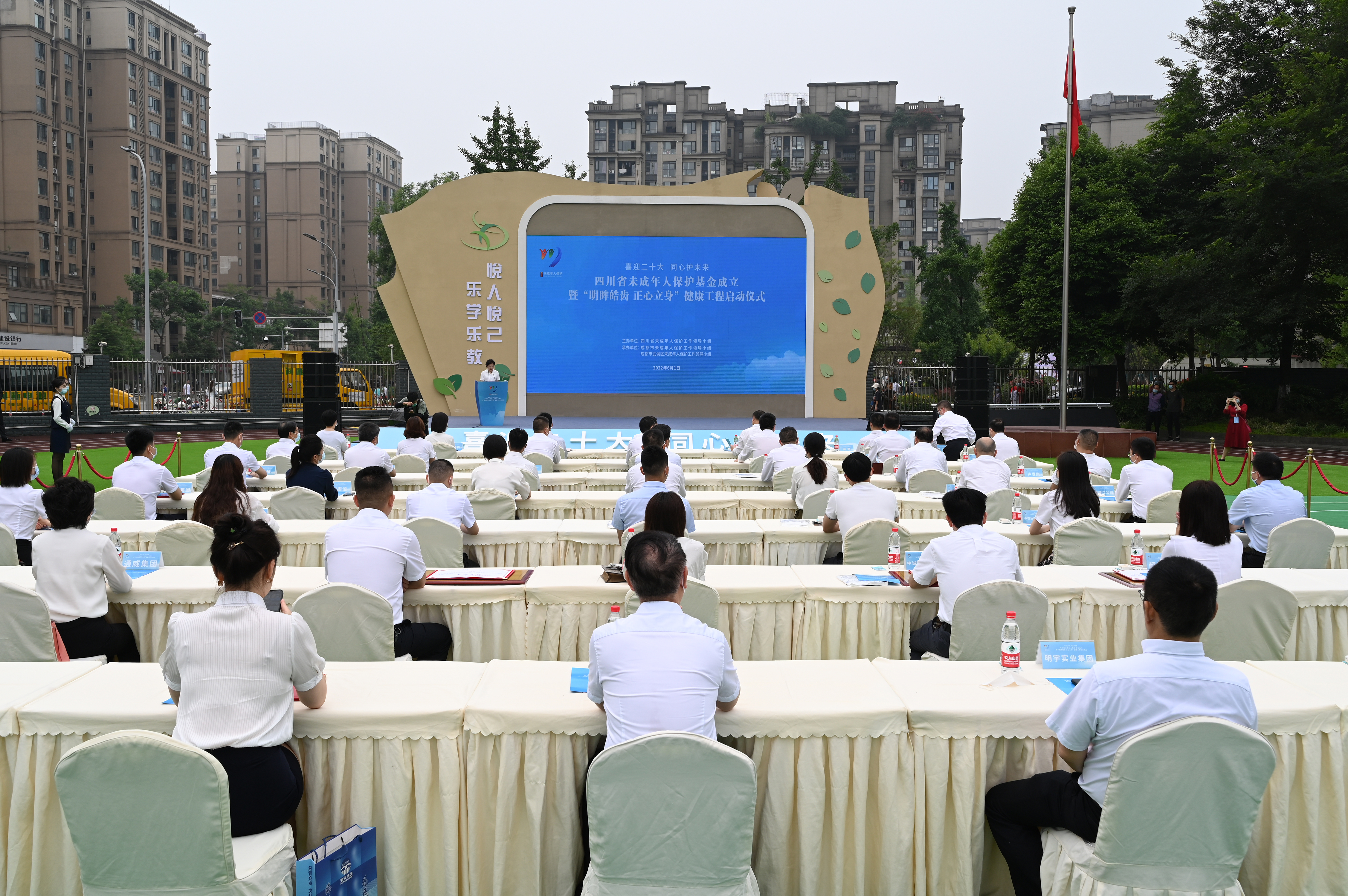儀式上,成都市委常委、副市長程偉致辭,民政廳廳長、省未成年人保護工作領導小組副組長兼辦公室主任益西達瓦介紹了四川省未成年人保護基金籌建及首批支持項目情況。隨后,主會場與 4 個分會場進行了視頻連線,綿陽市副市長、市未成年人保護工作領導小組副組長蔣麗英,資陽市副市長、市未成年人保護工作領導小組副組長賈發揚,南充市副市長、市未成年人保護工作領導小組副組長李洪君,宜賓市副市長、市未成年人保護工作領導小組副組長周文宇分別向主會場作“明眸”工程、“皓齒”工程、“正心”工程、“立身”工程情況報告。