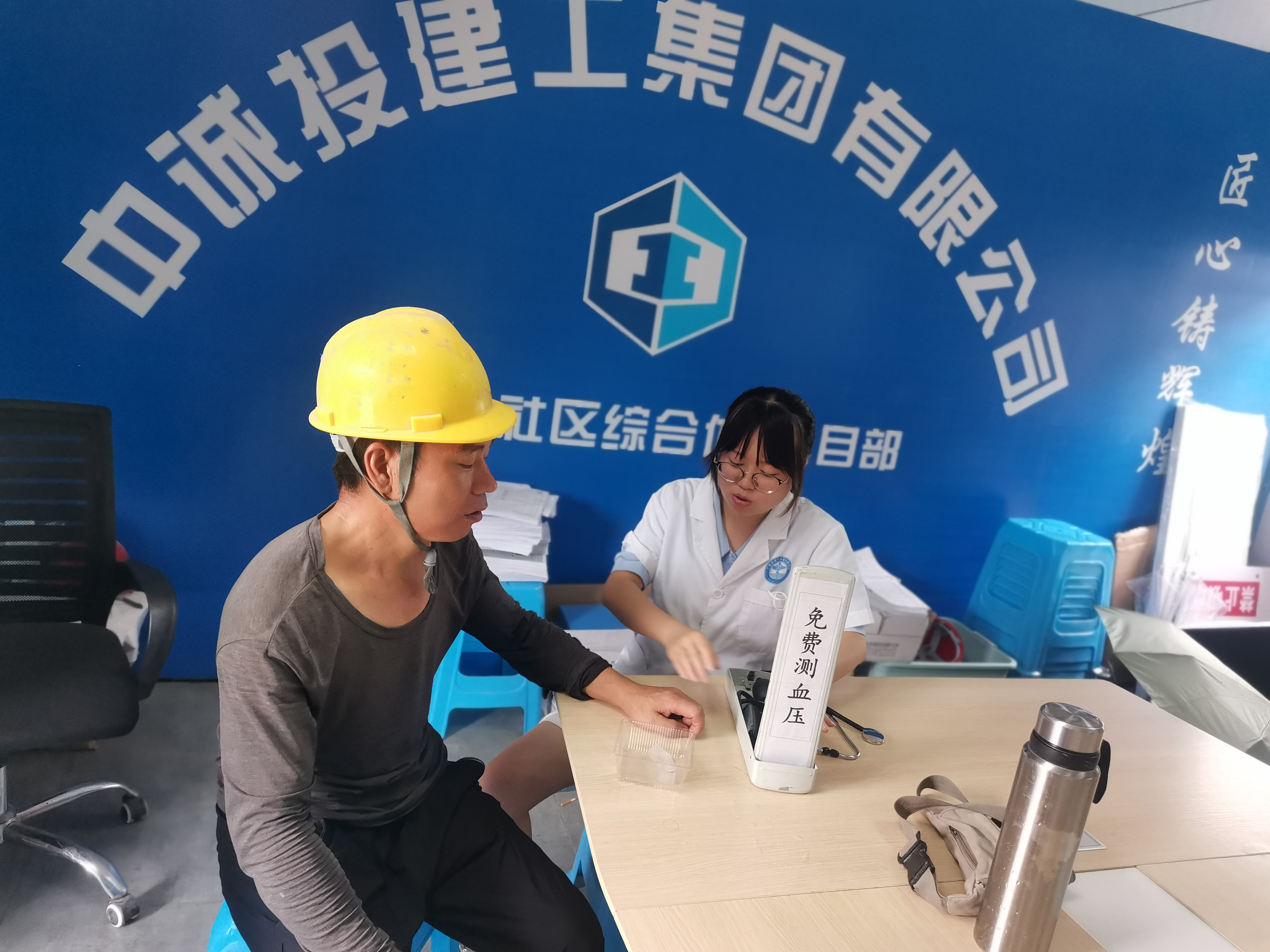 8月5日,永盛路社區(qū)綜合體項目部結(jié)合建筑工人的職業(yè)特性,組織全體人員開展健康體檢活動。