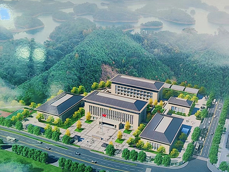 該項目位于杭州千島湖鎮珍珠半島,總建筑面積約34604平方米,主要建設內容有黨史館、報告廳、綜合辦公樓、文體樓、地下停車場及相關配套設施。