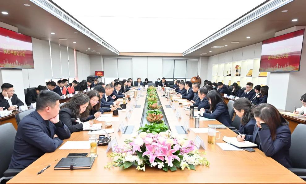 會上,總經理張輝分別與集團公司領導班子成員、分公司負責人、各管理中心負責人及項目經理簽訂2023年度經營目標責任書。
