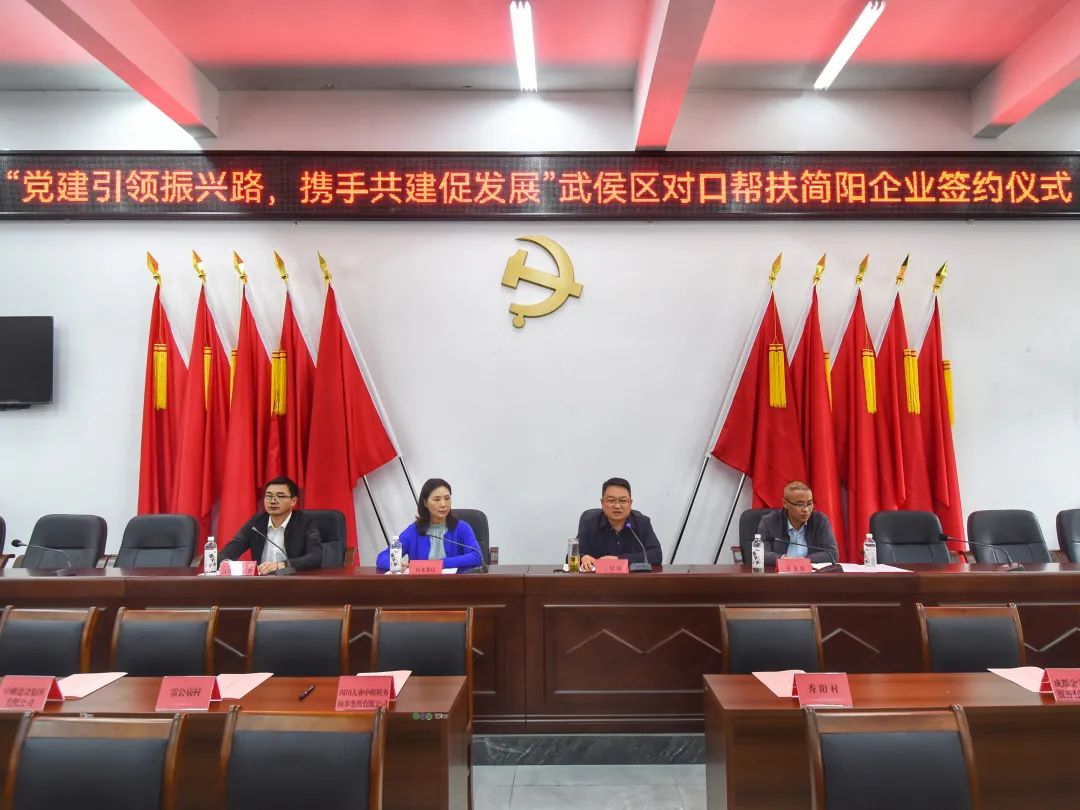 活動現場,武侯區水務局介紹了2022年以來武侯區對口幫扶簡陽的工作情況。三星鎮、青龍鎮分別就兩鎮目前經濟發展以及未來規劃作了介紹。
