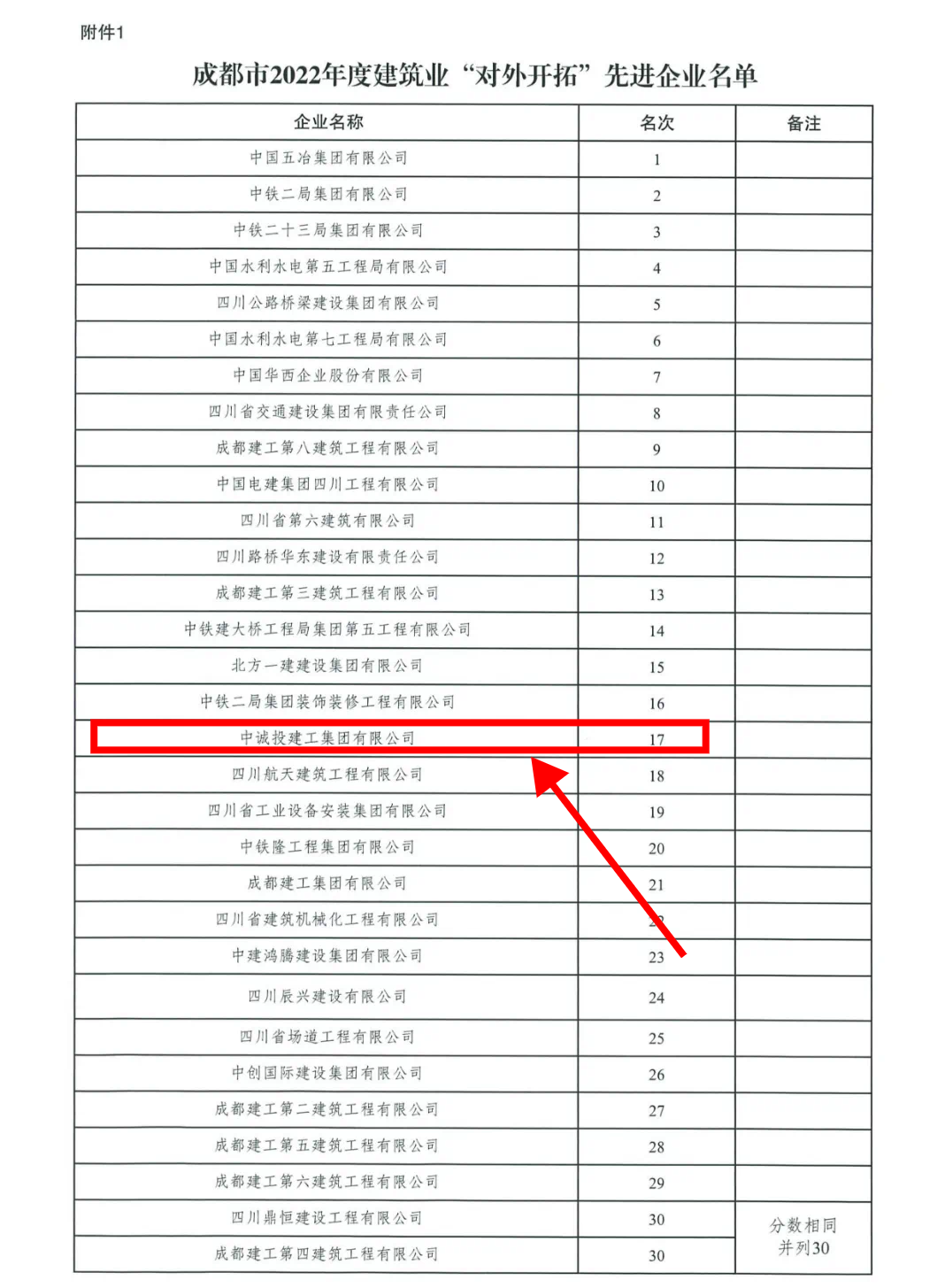 近日,成都市2022年度建筑業(yè)“對(duì)外開拓”先進(jìn)企業(yè)榜單正式發(fā)布,中誠(chéng)投建工集團(tuán)以突出的對(duì)外開拓業(yè)績(jī)榮登榜單。