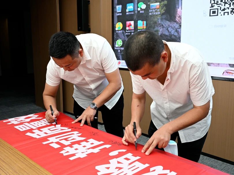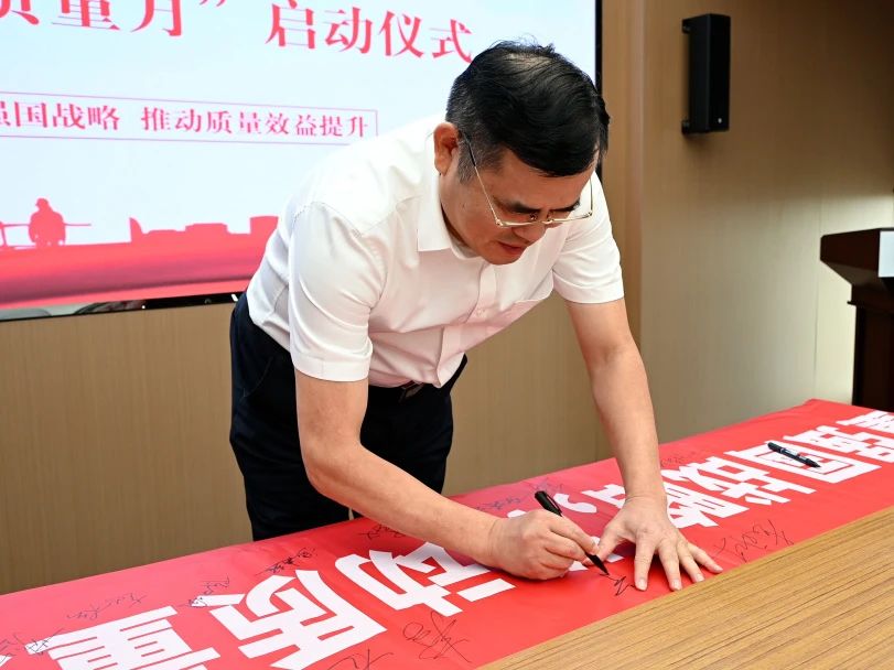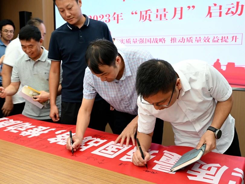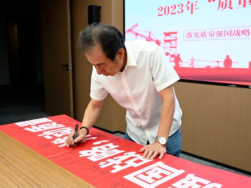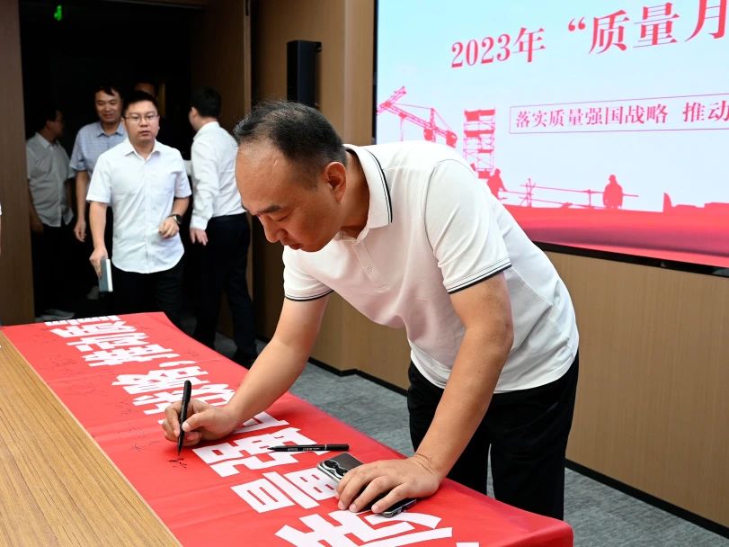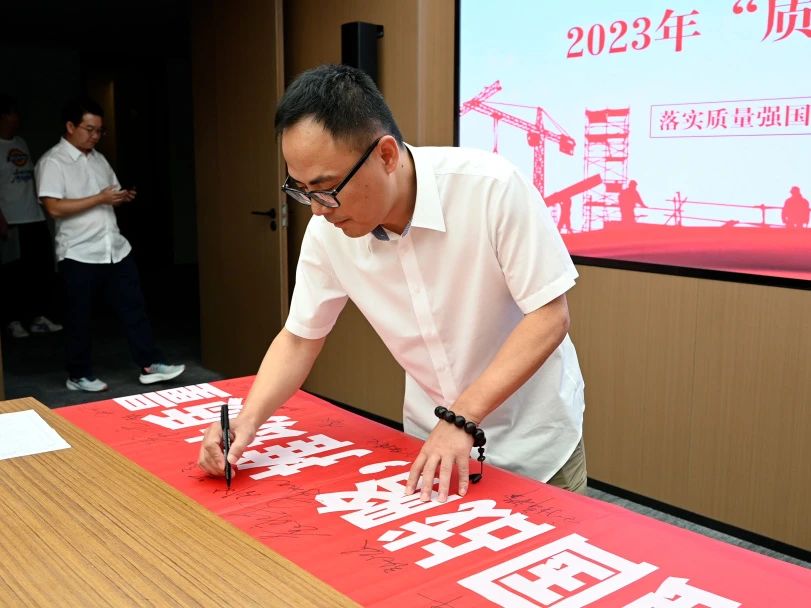 儀式上,全體人員在“質量月”主題條幅上鄭重簽名,承諾以實際行動,牢固樹立質量第一的強烈意識,不斷提升工程質量水平,大力推進質量強企建設。