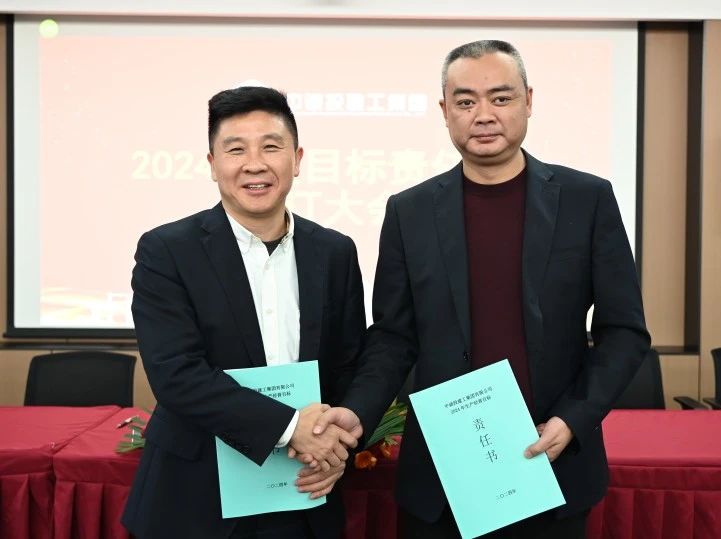 簽訂儀式上,董事長郭代軍與總經理張輝簽訂《2024年度生產經營目標責任書》;總經理張輝分別與各管理中心負責人簽訂《2024年度生產經營目標責任書》;總經理張輝分別與管理班子成員、下屬公司負責人及項目經理簽訂《2024年度市場經營目標責任書》。