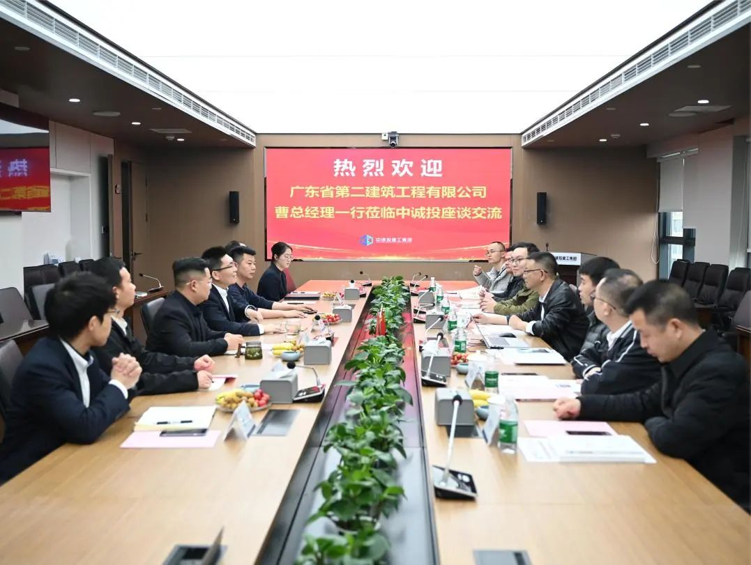 曹岸斌對中誠投建工集團的熱情接待表示感謝,并介紹了廣東省第二建筑工程有限公司發展歷程以及近年來改革發展情況。希望雙方充分利用各自領域優勢,在項目投資、建設、運營等領域深化務實合作,共同獲取、開發市場資源,實現優勢互補、互利共贏。