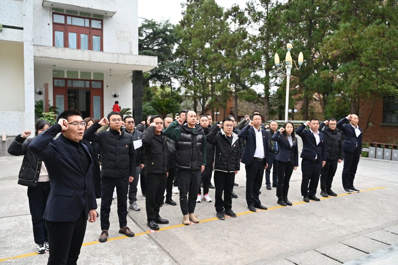 在講解員的引導(dǎo)下,全體人員帶著對老一輩科學(xué)家深深的敬意,踏入了兩彈城博物館。博物館內(nèi),鄧稼先、王淦昌、于敏等先輩們“干驚天動地事,做隱姓埋名人”的偉大事跡如一幅波瀾壯闊的歷史長卷緩緩展開。全體黨員近距離感悟“熱愛祖國、無私奉獻、自力更生、艱苦奮斗、大力協(xié)同、勇于攀登”的“兩彈一星”精神內(nèi)涵。一幅幅紀實影像,定格了往昔的奮斗瞬間;一件件珍稀文物,承載著厚重的歷史記憶;逼真的實物模型、生動的場景復(fù)原,以及多媒體互動體驗,全面回溯了那段在艱難困苦中披荊斬棘、砥礪前行的崢嶸歲月。在鄧稼先同志舊居前,全體黨員向鄧稼先銅像鞠躬、敬獻花籃,向“兩彈一星”功勛表達了崇高敬意和深切緬懷。在黨委書記張阜文的帶領(lǐng)下,全體黨員面對黨旗,莊嚴宣誓,重溫入黨誓詞,“我志愿加入中國共產(chǎn)黨,擁護黨的綱領(lǐng),遵守黨的章程……”一聲聲鏗鏘有力的誓詞回蕩在兩彈城的上空,充分表達了全體黨員對黨的無限忠誠和為共產(chǎn)主義事業(yè)奮斗終生的堅定決心。